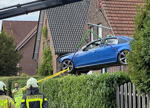 Pkw kommt von der Straße ab landet in zwei Gärten
