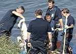 Marl (red). Fünf tote Schwäne trieben heute in der Lippe bei Marl. Die Feuerwehr barg am Vormittag die Kadaver. Über die Todesursache wurde noch nichts bekannt. Zunächst hatten Mitarbeiter des Lippeverbandes zwei tote Tiere entdeckt. Die zu Hilfe gerufene Feuerwehr war mit einem Boot und mehreren Fahrzeugen im Einsatz. Während der Bergung wurden dann weitere verendete Schwäne entdeckt. Den ganzen Artikel lesen… »
