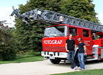 Fotodesigner Stefan Schrills arbeitet mit altem Feuerwehrauto