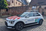 Drei Fahrzeuge erfassen Straßen und Gebäudefronten