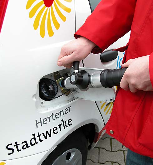 Herten. Die Erdgas-Tankstelle der Hertener Stadtwerke boomt wie nie. Im Vergleich zum ersten Halbjahr 2007 ist die Absatzmenge im ersten Halbjahr 2008 um rund 75 Prozent gestiegen. Ludger Triffterer, Bereichsleiter Gasversorgung, sieht vor allem einen Grund für die wachsende Beliebtheit: „Die steigenden Benzinpreise machen Erdgas als Treibstoff attraktiv.“