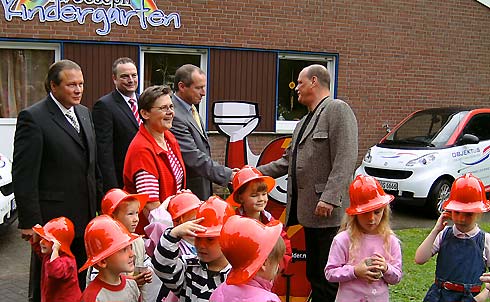 Haltern (mc). Mit einer besonderen Aktion zur 1.250-Jahresfeier des Dorfes Sythen hat die Firma Objektus Rauchmeldesysteme auf die Wichtigkeit von Rauchmeldern aufmerksam machen wollen. Sie hat den Kindergarten St. Joseph kostenlos mit Rauchmeldern ausgestattet. Eingeladen hatte die Firma Bau- und Verkehrsminister Oliver Wittke. Mit seinem Zitat: „Unser Ziel ist es, die Rauchtoten auf Null zu bringen“, gilt er als Verfechter von Rauchwarnmeldern. Geschäftsführer Heinz Fricke bedauerte bei dieser Gelegenheit, dass es in Nordrhein-Westfalen noch keine gesetzliche Verpflichtung zur Installation der Lebensretter gibt wie in anderen Bundesländern.