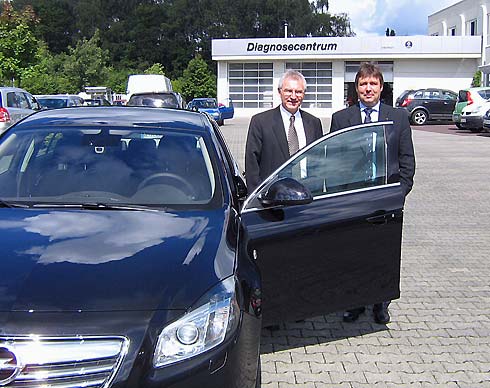 Herten. Hoher Besuch im Autohaus Bieling: Hans Demant, Vorsitzender der Geschäftführung der Adam Opel AG, besuchte jetzt das Autohaus Bieling zu einem informellen Gespräch mit Thomas Bieling (r.), Geschäftsführer des Bieling-Gruppe und Sprecher des Opel-Händlerverbandes. Als besondere Überraschung hatte Demant den neuen Opel Insignia dabei und stellte diesen spontan zu exklusiven Probefahrten bereit. Der Opel Insignia ist das neue Flagschiff des Herstellers und wird erst im November an die Opel-Vertragshändler ausgeliefert.