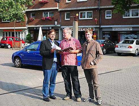 Marl. Ein Brunnen statt parkender Lastwagen, Bäume und Bänke statt einer Müllhalde. So könnte es künftig am Marktplatz in Brassert aussehen. Bei einer Ortsbesichtigung mit dem Technischen Dezernenten Wolfgang Seckler entwickelten der Brasserter SPD-Vorsitzende Michael Groß und sein Stellvertreter Brian Nickholz viele interessante Ideen, um den Platz zu einem Treffpunkt mit Atmosphäre werden zu lassen.