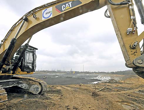 Marl (eib). Der Chemiepark gibt 16 Hektar Fläche ab – zurück zur Natur. Fast 30 Jahre lang war das Gelände zwischen Lippe und Kanal als Klärschlamm-Absetzbecken genutzt worden, seither lag es brach. Seit November laufen bereits die umfangreichen Arbeiten. Erst jetzt, mit dem Abtragen des Walles, sind sie von der Wulfener Straße aus sichtbar.
