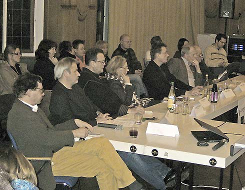 Recklinghausen (sl). Das Thema „Kunst trifft Stadt – Potenziale der Kunst im urbanen Raum” füllte den großen Sitzungssaal der VHS bis auf den letzten Platz. Zahlreiche Bürger waren gekommen um Kulturdezernentin Genia Nölle, VHS-Leiter Jürgen Pohl, Museumsdirektor Dr. Ferdinand Ullrich, Architekt Dieter Delius, Kulturveranstalter Guido Röcken, Dr. Klaus Schuchardt (CDU), Jürgen Fischer, Programmkoordinator und einer der Väter der Kulturhaupstadt Ruhr 2010, Sigrid Krynen (SPD), Marvin Jesse (FDP) und Joachim Polnauer (Grüne) bei einer Diskussion zu erleben, die auf höchstem Niveau und doch nie langweilig war.