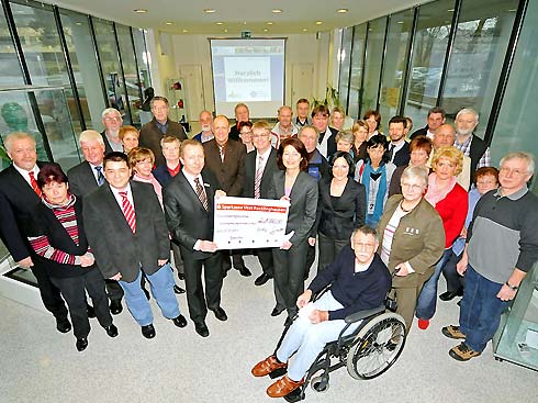 Marl. Insgesamt 40 gemeinnützige Vereine, Initiativen und andere Einrichtungen profitierten jetzt wieder von der Sparkasse Vest-Recklinghausen. Marktbereichsleiter Detlef Specovius und sein Stellvertreter Ulrich Neuhofen übergaben im Beisein von Bürgermeisterin Uta Heinrich 21.000 Euro an die Vertreter der Institutionen, welche aus dem PS-Zweckertrag stammen. Foto: Mengedoht