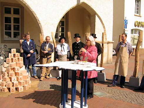 Haltern (rk). Die „Wir-Gruppe“ Halterner Handwerksmeister und die Bürgerstiftung „Halterner für Halterner“ präsentierten aus Anlass der Gründung der Bundesrepublik Deutschland vor 60 Jahren und des Mauerfalls vor 20 Jahren eine ganz ungewöhnliche Ausstellung vor dem alten Halterner Rathaus, die viel Beachtung fand.