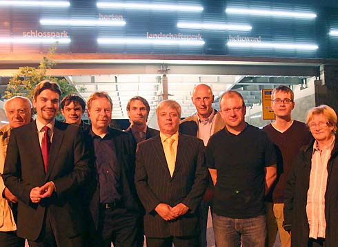 Herten. Die Brücke an der A2 in Herten-Süd wurde buchstäblich in neues Licht gerückt: LED-Leisten sorgen nicht nur für eine schicke Optik, sondern auch für bessere Sichtverhältnisse. Viele konnten es kaum noch abwarten, doch nun sind die Sanierungsarbeiten beendet und der Verkehr fließt wieder. Die Brücke soll in Zukunft als „Tor zur Stadt“ wahrgenommen werden, erläuterte Bürgermeister Dr. Uli Paetzel bei der feierlichen Eröffnung. Mit ihrer Lage am Zukunftsstandort Ewald und an der Autobahnauffahrt zur A2 ist sie dafür wie geschaffen. „Schlosspark Herten“ und „Landschaftspark Hoheward“ lesen Passanten und Autofahrer ab sofort auf der Schallschutzwand der Brücke. „Mit diesen Schriftzügen weisen wir auf die wichtigsten Sehenswürdigkeiten in Herten hin“, so Stadtbaurat Volker Lindner. Doch auch die Sicherheit der Fußgänger und Radfahrer durch hellere Beleuchtung sei bei der Planung von wichtiger Bedeutung gewesen.