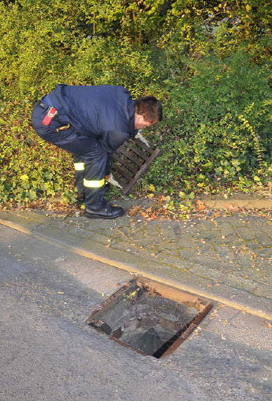 Dies Kräfte mussten dann die Gullydeckel suchen und in mühsamer Handarbeit wieder einsetzten. Nach jetzigem Kenntnisstand wurde niemand geschädigt.