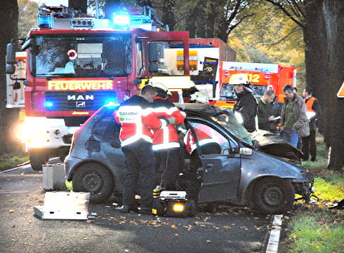 Herten. Sehr erbost reagierten die drei Autofahrer, die einem schwer Verunglückten helfen wollten, aber feststellen mussten, dass andere Verkehrsteilnehmer einfach weiter fuhren. Am Morgen war ein PKW-Fahrer auf einer Alleestraße in Herten-Bertlich frontal gegen einen Baum geprallt und im Fahrzeug eingeklemmt worden.