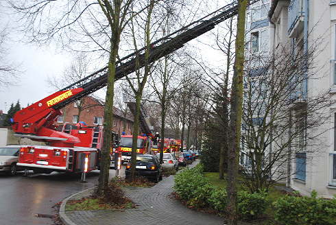 Herten. 70 Kräfte der Hertener Feuerwehr sowie weitere Rettungskräfte aus Recklinghausen, Gladbeck, Marl, Haltern, Herne und Gelsenkirchen waren am 1. Weihnachtstag im Einsatz: Um 11.50 Uhr ging bei der Kreisleitstelle der Notruf aus dem Wally-Windhausen-Zentrum in Herten-Süd ein, nur sechs Minuten später waren die ersten Einsatzkräfte der Hauptwache vor Ort.