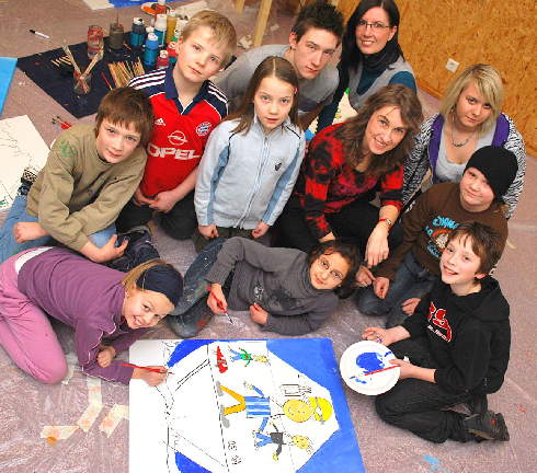 So inspirierend kann Emscherkunst sein: Schülerinnen und Schüler der Marienschule Recklinghausen und des KinderJugendParlamentes Recklinghausen malten gemeinsam mit der Herner Kunstdozentin Beate Matkey ihre ganz persönliche Ahnengalerie. Inspiriert wurden die Jugendlichen vom Mosaik „Glückauf! Bergarbeiter im Ruhrgebiet“ der Frankfurter Künstlerin Silke Wagner, welches am Faulturm Herne im Rahmen der EMSCHERKUNST.2010 entstehen wird. Alle Werke werden anlässlich der Ausstellungseröffnung am 29. Mai gezeigt.