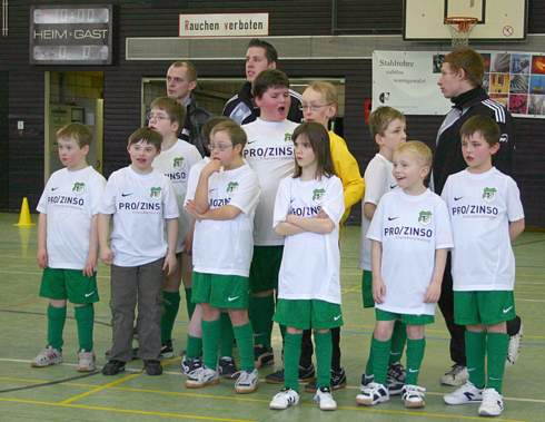 Datteln. Die Kicker der integrativen Fußballgruppe von Germania Datteln nahmen am Hallenturnier des TuS Union 09 Mühlheim an der Ruhr teil. Das Germania-Team war mit Abstand das jüngste Team im Teilnehmerfeld und konnte sich trotzdem gut behaupten. Gegen Gastgeber Union 09 Mülheim gab zunächst ein torloses Remis, ehe man gegen den unangefochtenen Turniersieger TV Schiefbahn mit 0:4 und gegen Blau-Weiß Aasee 0:3 unterlag. In den Rückspielen kamen die Germanen-Kicker dann schon weitaus besser zurecht. Gegen Union 09 gelang der erste Sieg der Mannschaft überhaupt. Durch ein Tor der quirligen Saskia Slomma gewannen die grün-weißen Kicker mit 1:0-Toren. Anschließend ein 0:3 gegen Schiefbahn. Mit etwas Glück hätten die Kicker im letzten Spiel auch gegen Blau-Weiß Aasee noch ein Remis erzielt, aber eine Unaufmerksamkeit nutzte der Gegner zum Siegtor, am Ende aus Germanen-Sicht eine 0:1-Niederlage. Ein schönes Turnier für alle Teilnehmer, da waren sich alle einig.