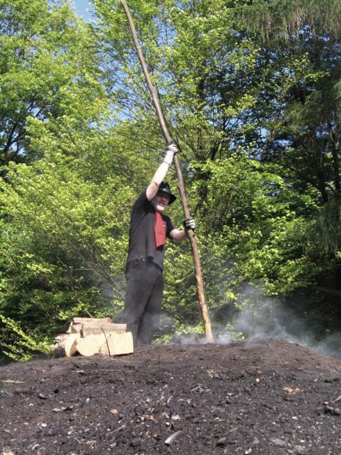 Förster Harald Klingebiel vom Forstamt Haard in Flaesheim, Regionalverband Ruhr, Ruhr Grün, hat eine klare Meinung: „Notwendig unter betriebswirtschaftlichen Aspekten ist die Kohlenmeiler-Aktion nicht. Über den Sinn gibt es verschiedene Sichtweisen. Wir machen es, damit wir eine Plattform haben, um eine breite Öffentlichkeit anzusprechen und die Menschen den Ort nutzen und sich über Natur und Umwelt informieren.“