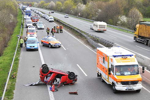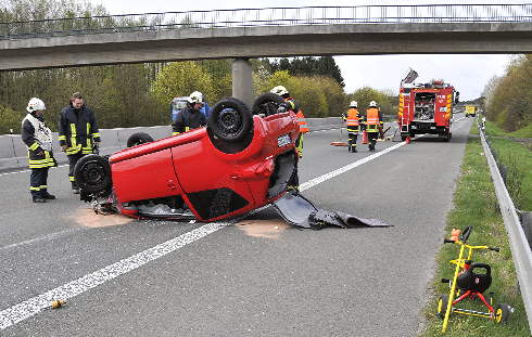 Nach ersten Erkenntnissen fuhr die Frau auf einen voraus fahrenden Lkw auf und verlor die Kontrolle über ihren Kleinwagen. Das Fahrzeug überschlug sich mehrfach und blieb auf dem Dach liegen. Die Frau und das Kind wurden von anderen Verkehrsteilnehmern aus dem völlig zerstörten Pkw befreit und noch vor Ort vom Rettungsdienst und Notarzt versorgt. Anschließend wurden beide ins Dorstener Krankenhaus transportiert.