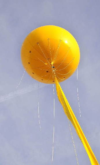 Vest (dug). Es war ein schönes Bild, als die 310 gelbe Ballons am Samstagmittag in den Ruhrgebietshimmel schwebten. Bereits am Montag suchte man die leuchtend gelben “SchachtZeichen” vergeblich. Wegen des starken Windes blieben die Ballons am Boden. „Zu gefährlich“, so die Ruhr.2010-GmbH. Die Einschränkung gilt bis auf Weiteres. Damit ist auch das geplante NachtSchachtzeichen in Gefahr. Von 22 bis 1 Uhr sollten die fliegenden „Zeichen“ beleuchtet werden.