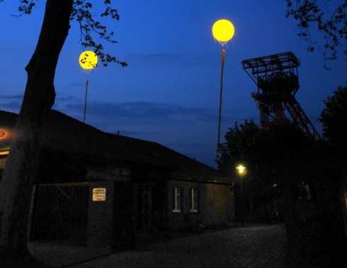 Am Pfingstmontag sollten die Ballons angestrahlt werden. Wegen des Windes mussten sie allerdings auf 30 Meter heruntergezogen werden. Ein zweites Nachtschachtzeichen ist am heutigen Samstag, 29. Mai, von 22 bis 1 Uhr geplant.