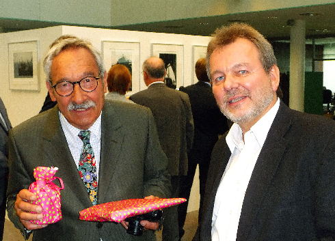 Der Hamburger Fotograf Prof. Ulrich Mack (Foto) gehörte über Jahrzehnte zu den besten Fotografen Deutschlands. Zur Ausstellungseröffnung in Anwesenheit von etwa 140 Gästen kam er mit Ehefrau Gundel nach Recklinghausen. Selbst als der Vorstandsvorsitzende der Sparkasse, Dr. Michael Schulte, das Leben Macks in einer Ansprache Revue passieren lässt, kann er es nicht sein lassen: Ulrich Mack drückt auf den Auslöser seiner Kamera.