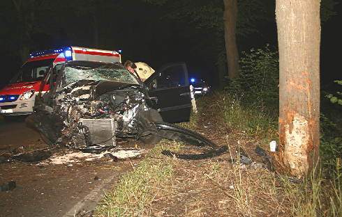Oer-Erkenschwick. Ein 21-jähriger Dattelner raste am frühen Samstagmorgen (26.6.) bei einem Verkehrsunfall auf der Verbandsstraße in Oer-Erkenschwick gegen einen Baum und wurde dabei schwer verletzt.