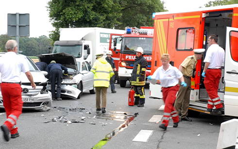 Bei dem Zusammenstoß wurden die Fahrzeugführer wie auch die jeweiligen Beifahrerinnen, eine 79- jährige Hamminkelnerin sowie eine 70-jährige Dinslakenerin, verletzt und in umliegende Krankenhäuser eingeliefert.