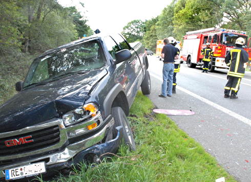 Dorsten/Marl. Bei einem schweren Verkehrsunfall auf der Marler Straße sind am Nachmittag zwischen Dorsten und Marl zwei Personen verletzt worden. Ein Pickup und ein Kleinwagen waren zusammengeprallt. Beide Fahrzeuge wurden anschließend in den jeweils gegenüberliegenden Straßengraben geschleudert. Die B225 musste für die Dauer der Rettungs- und Bergungsarbeiten für knapp 45 Minuten voll gesperrt werden.