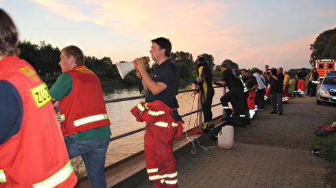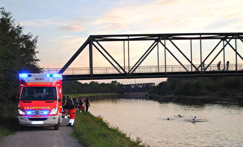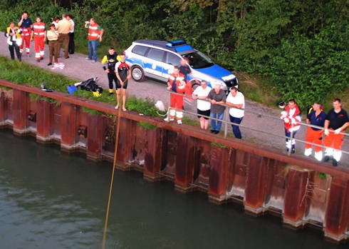 Gegen 20 Uhr hatten zwei Mädchen beobachtet, wie ein Mann von der Brücke im Bereich des Kirchwegs in Hamm-Bossendorf ins Wasser des  Wesel-Datteln-Kanals sprang. Da er nicht mehr auftauchte alarmierten sie Feuerwehr und Polizei.