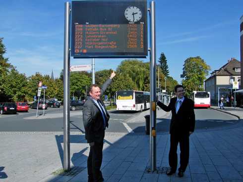 Was seit Mittwoch auf dem Monitor in Herten oder an der neuen Anzeigetafel am Halterner Bahnhof möglich ist, gilt auch für jede noch so abgelegene Haltestelle, die ein Bus der Vestischen ansteuert. Denn die elektronische Fahrplanauskunft im Internet arbeitet mit den Daten des Betriebsleit- und Beschleunigungssystems des hiesigen Nahverkehrsbetriebes und kennt daher auch die aktuellen Verspätungen in Echtzeit. Dieser Service kann einfach und bequem mit einem internetfähigem Handy abgerufen werden.