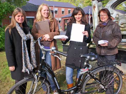 Jetzt erhielt sie aus den Händen von Irja Hönekopp und Lydia Schäfers vom Projektteam „fahrradfreundliche Stadt Herten“ eine Urkunde, die auch noch zu ihrem Geburtstag datiert ist, ein von den Stadtwerken gesponsertes Multifunktionswerkzeug und ein vom Fahrradgeschäft Mitze gesponsertes Reparaturwerkzeug.