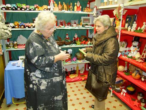 Früher ist ihnen zugearbeitete worden, von überallher bekamen die Hobby-Handwerkerinnen Spenden: Neben Helga Bock drei weitere Frauen aus Lippramsdorf (davon zwei Hobby-Keramikerinnen), eine Papierkünstlerin aus Wulfen-Barkenberg, eine Patchworkerin aus Sythen und eine Kettenmacherin aus Dorsten.