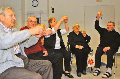 In der geriatrischen Tagesklinik in Waltrop ist der wöchentliche Termin bei den Patienten sehr beliebt. „Wir freuen uns schon Tage vorher auf die Tanzstunde“, meint Siegfried Sperhake. Der Rentner ist so gar kein Tanzmuffel wie viele seiner männlichen Zeitgenossen. Die Bewegungen im Sitzen machen allen Teilnehmern Spaß. „Aber manchmal ist es auch anstrengend, weil es eine Therapie ist“, so Tanzfan Heinz Plath.
