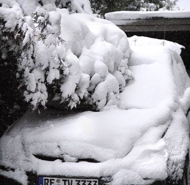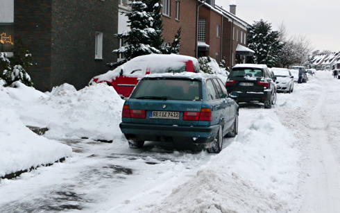 Wie in diesem Foto zu sehen sind aber auch Autofahrer nicht gerade rücksichtsvoll, die geräumte Gehwege zum Parken missbrauchen. So steht man zwar gut, Fußgänger müssen aber sehen, wo sie bleiben.