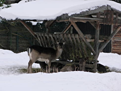 Gut versorgt: Rehe in einem Privatgehege in Recklinghausen-Suderwich.