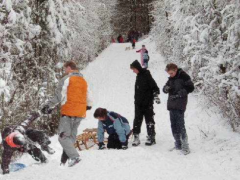 Seit der Blaubeerberg zwischen Dülmener Straße (Hellweg) und Silbersee 3 in Haltern am See kein Geheimtipp mehr ist, stehen die Rodler hier Schlange (oben).