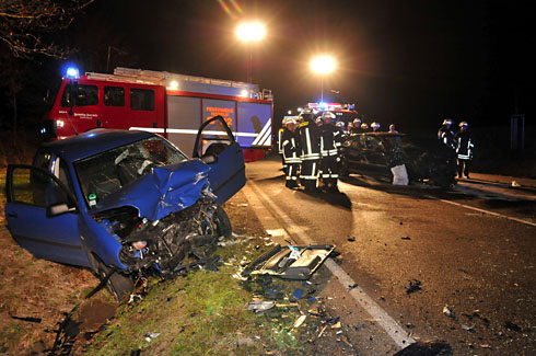 Schermbeck. Am Morgen (Donnerstag) kam es in Schermbeck zu einem schweren Verkehrsunfall. Nach ersten Ermittlungen der Polizei kollidierten gegen 05.30 Uhr auf der Erler Straße aufgrund von Reifglätte und Wildwechsel zwei Pkws frontal.Die Fahrzeuge wurden durch die Wucht des Aufpralls im Frontbereich völlig zerstört. Eine 20-jährige Frau aus Schermbeck wurde in ihrem VW Polo eingeklemmt und musste von der Feuerwehr aus dem Unfallwrack schwer verletzt befreit werden. Der 30-jährige Fahrer (aus Raesfeld Erle) eines Opel Astras konnte sich selbst verletzt aus dem Unfallwagen befreien. Beide Fahrer wurden jeweils mit einem Rettungswagen, nach der Behandlung durch einen Notarzt vor Ort, ins Krankenhaus transportiert. Die Erler Strasse wurde von der Polizei für die Rettungs- und Bergungsarbeiten voll gesperrt.