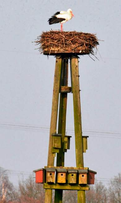 Die Spaziergänger im Hervester Bruch konnten in diesen Tagen einen „alten Bekannten“ begrüßen: Storch Werner, der aus seinem Winterquartier nach Dorsten zurückgekehrt ist. Er machte es sich sofort wieder auf seinem Horst bequem. Seine Partnerin Luise wird vermutlich, genau wie im letzten Jahr, ein paar Tage später hier eintreffen. Schon seit einigen Jahren zieht das Storchenpaar in Dorsten seine Jungen auf. Foto: Bludau