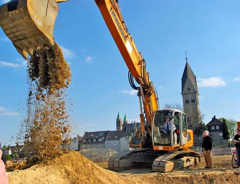Erster Spatenstich mit dem Bagger