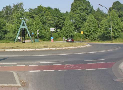 Es soll auf der Mitte des Kreisverkehrs Otto-Wels-/Loekampstraße aufgestellt werden, muss sich dort aber den Platz mit einer bereits gepflanzten Eiche teilen. Die überragt das Modell aber schon heute. Sicherheitshalber wird das 380 Kilo schwere Modell noch fest im Boden verankert – man weiß ja nie.