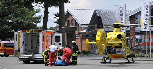 gelöscht. Zu Gebäudeschäden kam es nicht. Der Dorstener wurde aber so schwer verletzt, dass der alarmierte Notarzt den Rettungshubschrauber Christoph 8 anforderte. Für die Landung im Wulfener Gewerbegebiet musste die Straße Burenkamp von der Polizei und Feuerwehr gesperrt werden. Nach der Erstvorsorgung durch den Notarzt wurde der Schwerverletzt zur weiteren Behandlung in eine Spezialklinik nach Gelsenkirchen geflogen.