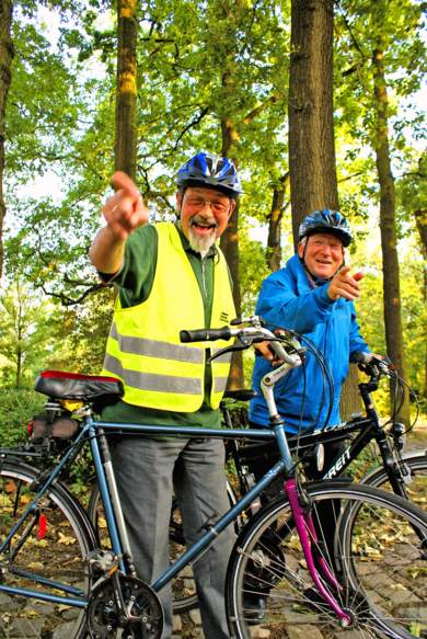 Da vorne geht’s weiter: Paul Lipp und Frithjof Karkhof vom ADFC kennen die meisten Wege. Foto: Artschwager