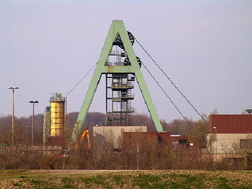 Schacht 8, ursprünglich als Wetterschacht genutzt, wurde er 1978 zur Seilfahrt-und Befahrungsanlage ausgebaut. 1980 erreichte der Schacht die Endteufe bei 1300 m, 1982 ging er in Betrieb. Foto: Jörg Schönthaler