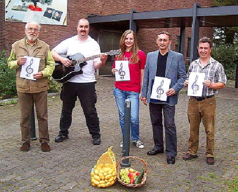 Musikalisch Dank für die Ernte sagen, das ist eine Idee der Hammer Freunde im Heimatverein Marl und des Fördervereins der Lutherkirche. Den Erntedank läuten in diesem Jahr neue und junge Chöre ein und präsentieren dabei ihre „musikalische Ernte“. Akteure sind die A-Capella-Gruppen Vocal Blue (Gospel und mehr) und Jaded (Musical-Hits, Pop-Songs, Traditionals) und - als Premiere - der neue Polsumer Shanty-Chor „Marler Küstenklänge“. Marcel Willemsen vom Förderverein der Lutherkirche (v.l.), Michael Schmidt (Marler Küstenklänge), Inga Kappen (Jaded) und Thomas Raub (Hammer Freunde) erwarten am Freitag, 30. September, um 19 Uhr in der Lutherkirche am Marl-Hammer Markplatz viele Musikfreunde bei freiem Eintritt.