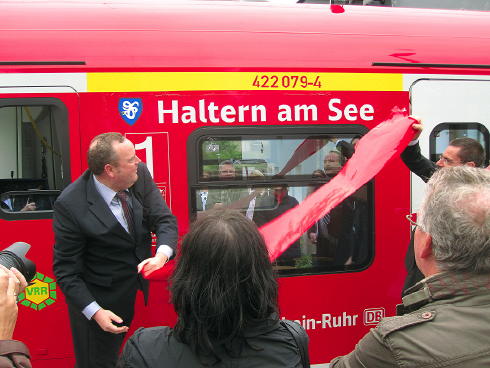 Mit Haltern am See erhält der fünfte Zug der S-Bahn Rhein-Ruhr einen regionalen Stadtnamen. Schließlich spiele Haltern als Knotenpunkt für Pendler aus der Region eine wichtige Rolle, freute sich Fassel über das Jubiläum.
