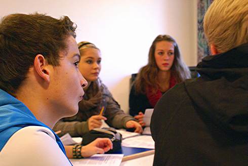 Das Gemeindehaus der St. Antoniuskirche in Recklinghausen Süd, es ist Dienstagvormittag. Schüler der elften Klasse des Theodor-Heuss-Gymnasiums sitzen um einen Runden Tisch, sie starren gebannt auf den Text vor sich, und lesen hochkonzentriert. „Das müssen sie auch sein”, erklärt Stefan Erdmann – er leitet zusammen mit André Yorulmaz das Speed-Reading-Seminar.
