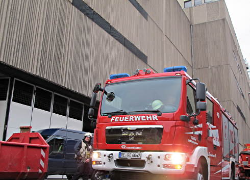 Recklinghausen. Und das mitten im Weihnachtsgeschäft … Heute Morgen gegen 8 Uhr knallte es im Technikkeller von Karstadt: Kurzschluss! Die Sicherheitsabschaltung der vier Trafos im Haus funktionierte zwar und fuhr das Stromnetz sofort herunter, doch in der Folge kam es zu erheblicher Rauchentwicklung. Die 50 Mitarbeiter aus Verwaltung, Haus- und Reinigungstechnik sowie das Verkaufspersonal der Lebensmittelabteilung mussten rasch das Haus verlassen. Geöffnet hatte Karstadt zu diesem Zeitpunkt noch nicht. Kurze Zeit später traf auch die Feuerwehr ein. Da es nicht brannte, konzentrierten sich die Einsatzkräfte darauf, mit Hochleistungslüftern den Rauch aus dem Treppenhaus zu blasen. Geschäftsführer Peter Klingebiel hoffte zu diesem Zeitpunkt noch, das Kaufhaus schnell für den Publikumsverkehr öffnen zu können.