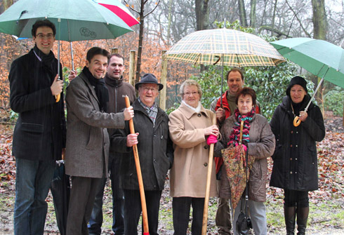 Herten. In die historische Kastanienallee im Schlosspark reihen sich neue Bäume ein. Dank des Ehepaares Irene und Lothar Adler haben gestern zwei weitere Esskastanien dort ihren Platz gefunden. Gemeinsam mit Bürgermeister Dr. Uli Paetzel pflanzten die großzügigen Spender die beiden Bäume bei strömenden Regen unweit des Tabakhäuschens.