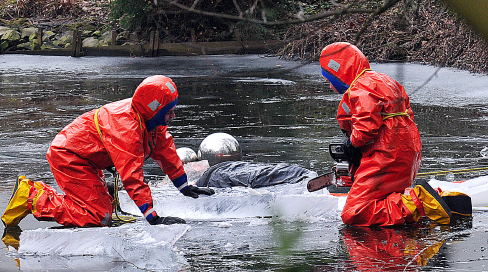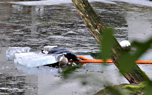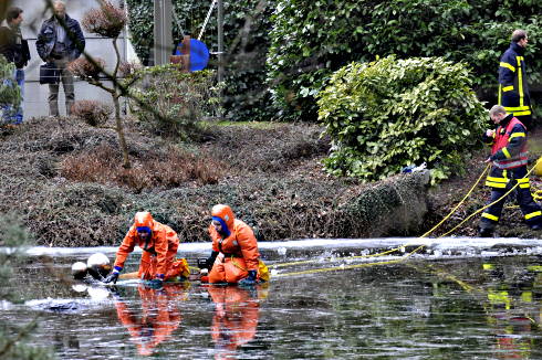 Dorsten. Es war ein grausiger Fund am Mittwochvormittag in einem privaten Löschteich an der Borkener Straße in Dorsten. Hinter dem „Prisma-Gelände“ wurde eine eingefrorene Wasserleiche gefunden. Die Dorstener Feuerwehr wurde zur Unterstützung bei der Bergung angefordert, da der Leichnam schwer zu bergen war. Die Einsatzkräfte mussten den Toten mit einer Kettensäge aus dem Eis herausschneiden.