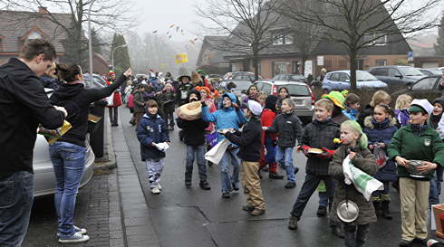 Dorsten-Lembeck/Wulfen. Sie sind viele und sie sind laut und bunt. Mit lautem Helau Rufen und dem Getöse jeder Menge Krachmacherinstrumente, wie Pfeifen, Rasseln und Trommeln zogen rund 240 Grundschüler und Lehrer der Wittenbrink Schule durch Wulfen. Dieser Krachmacherumzug hat schon seit vielen Jahren Tradition und ist für die Kinder ein Highlight der tollen Tage.
