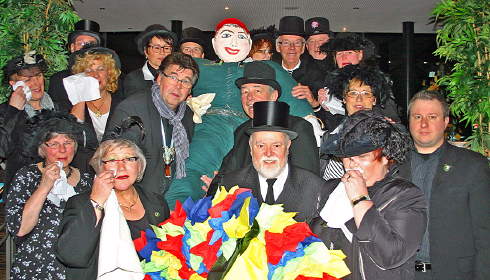 Recklinghausen. Mit einem letzten Geleit durch die Innenstadt hoch zum Ruhrfestspielhaus nahmen die drei Karnevalsgesellschaften Poahlbürger, Altstadtblüten und GroReKa tränenreich Abschied von Bacchus. Mit „Rotz und Wasser“ trug die närrische Hinterbliebenschaft ihren Schutzherren zu Grabe. Zuvor hatten die Jecken aber allen Grund, freudig auf die vergangenen Tage zurückzublicken. Denn der Rosenmontagszug mit seinem Abschluss auf dem grünen Hügel war so erfolgreich, dass es im nächsten Jahr auf jeden Fall eine Neuauflage geben wird. „Mit soviel Andrang hatten wir gar nicht gerechnet. Das war bombastisch“, resümmiert Norbert Grebe, Vorstandsvorsitzender des Carnevalscomitees Vest Recklinghausen.