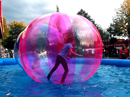 Attraktion auf dem See: Im Ball über das Wasser laufen